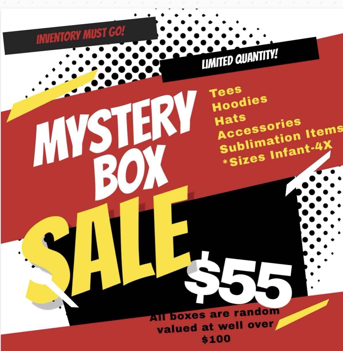 It’s back! Our annual mystery box sale! 📦 We are a print on demand company, so too much excess inventory gets in the way…